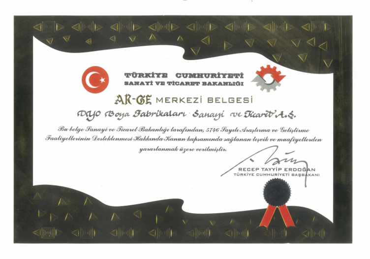 DYO стала первой лакокрасочной компанией, получившей сертификат Центра по исследованию и разработке.